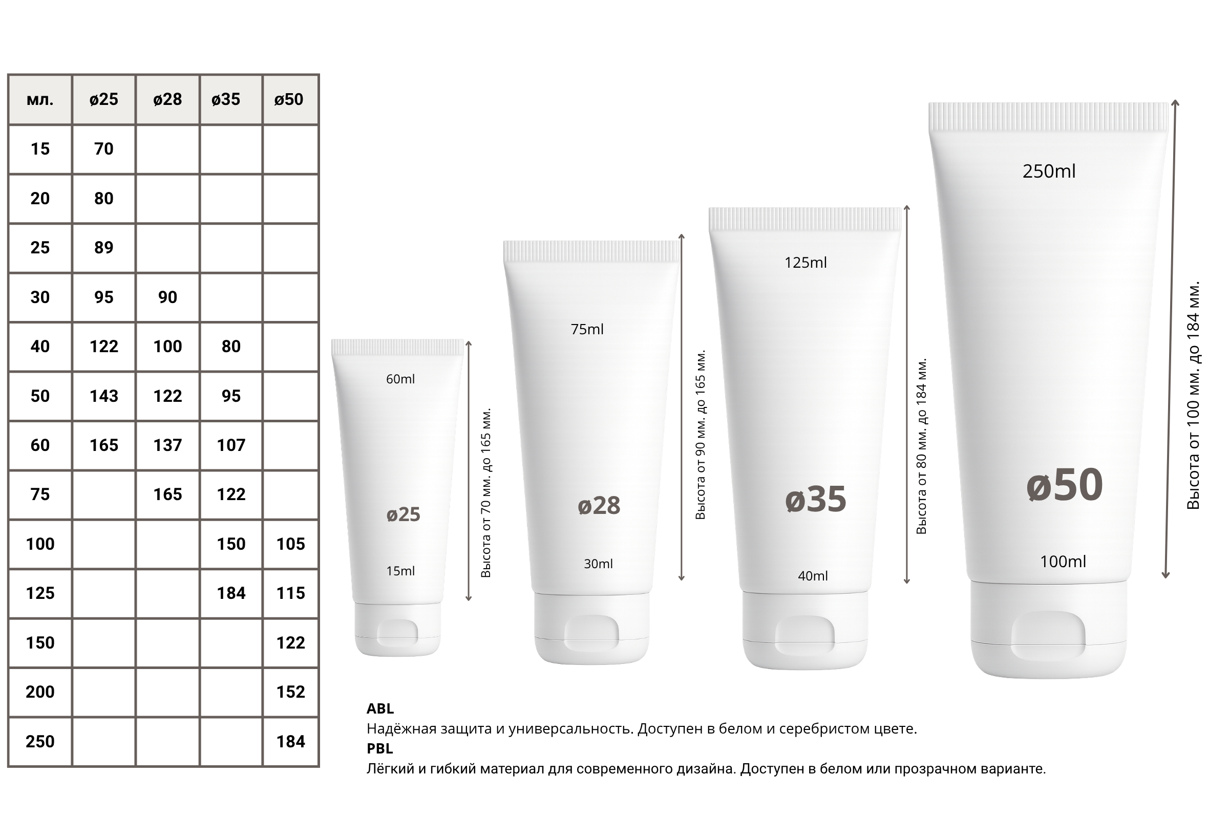 - Объём: от 15 до 250 мл